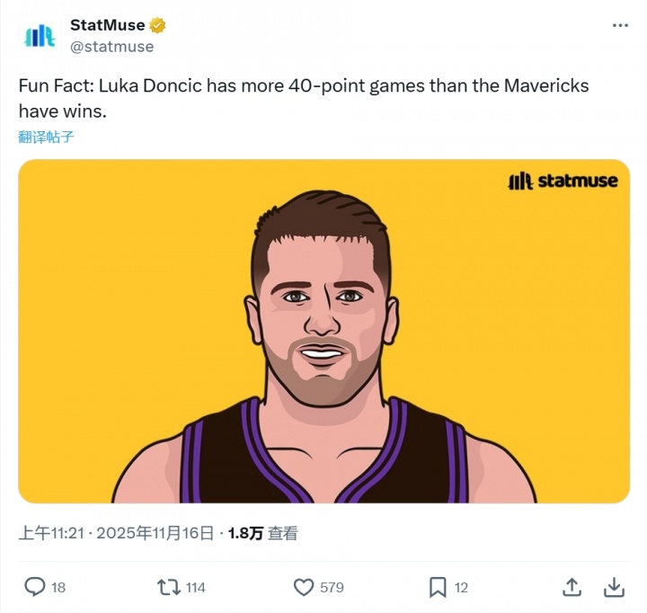The US media posted "killing and heartbreaking" data: Doncic's 40+ times this season (4) > the Mavericks' current number of wins (3)