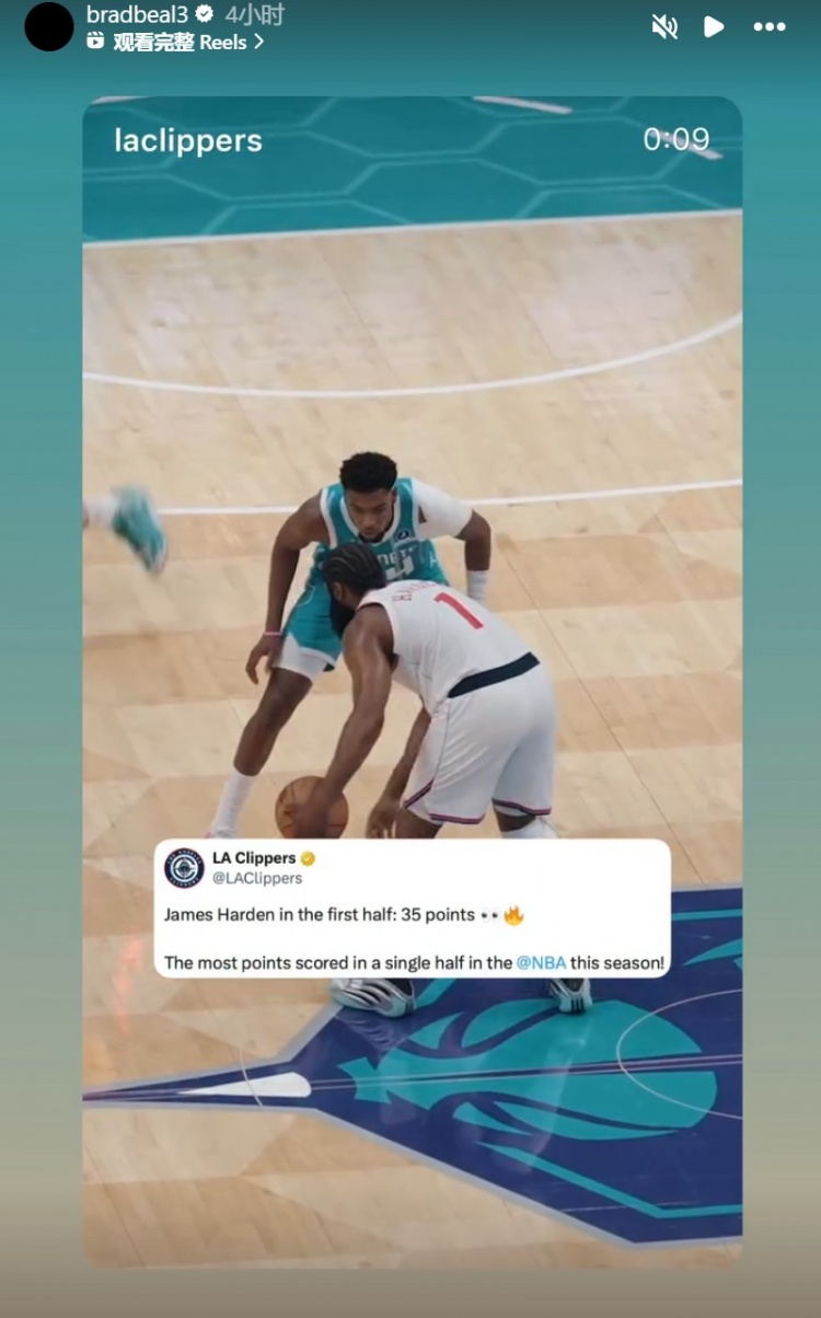 In the NBA regular season, the Clippers defeated the Hornets 131-116, ending their three-game losing streak. In this campaign, Harden played 35 minutes and 13 seconds, making 17 of 26 shots, 10 of 16 three-pointers, 11 of 14 free throws, and scored 55 points, 3 rebounds, 7 assists, and 1 steal. After the game, Bill, who suffered a season-ending injury, forwarded several videos of Harden's goals.