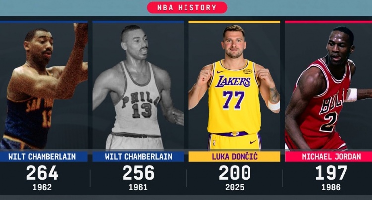 Doncic scored 200 points in the first 5 games of the season, the third highest percentage in history. The top two were Chamberlain.