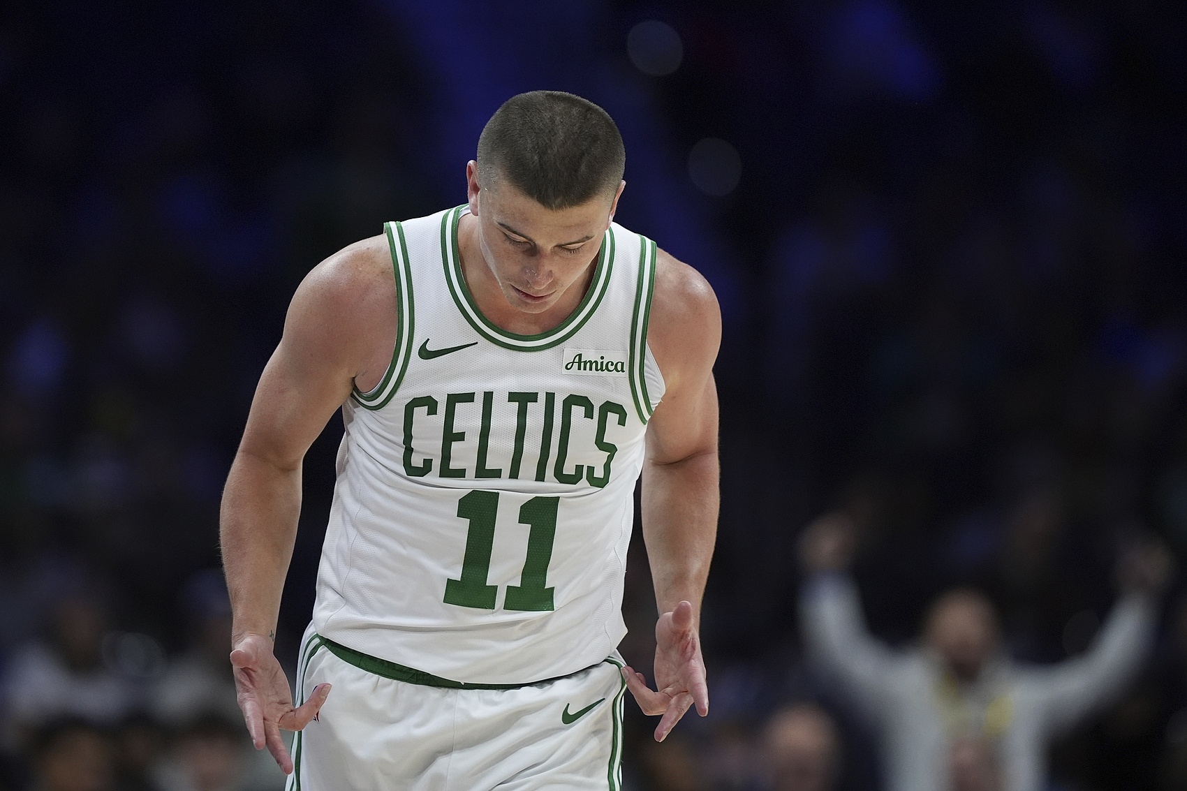 NBA Eastern NBA Cup, the Celtics trailed the Nets 53-62 at halftime. In the first half, two Celtic players, Pritchard and Anfernee Simons, performed steadily. Pritchard made 4 of 7 shots in 18 minutes, 3 of 5 three-pointers, and scored 11 points and 1 rebound, with a plus-minus value of -5; Anfernee Simons made 4 of 6 shots, 2 of 3 three-pointers, and scored 10 points, 1 rebound, 3 assists, and 1 steal in 16 minutes.