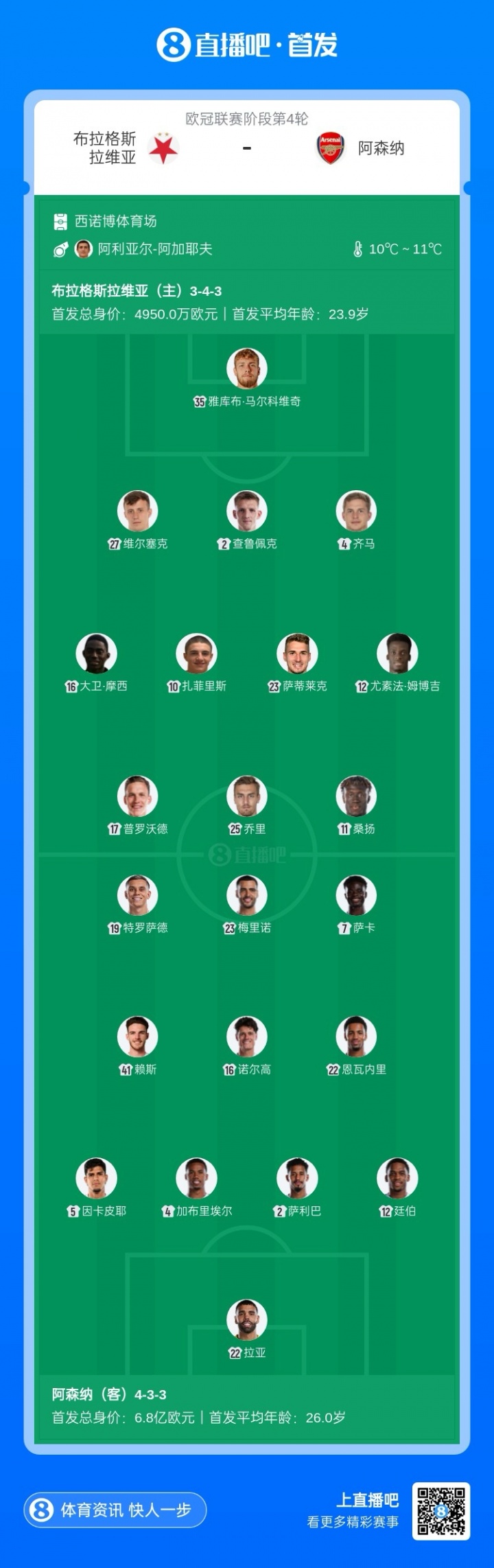 In the fourth round of the UEFA Champions League, Arsenal played against Slavia Prague. The starting lineups of both sides were announced before the game. [Arsenal, Jocles is out due to muscle discomfort. Rice and Saka led the way, Merino and Nwaneri all started, and Eze, Skelly, and 15-year-old Dauman were on standby. 】 Starting for Slavia Prague: 35-Jakub Markovic, 27-Vlcek, 2-Charupek, 4-Zima, 16-David Moses, 10-Zafiris, 23-Satilek, 12-Yusufa Mboji, 17-Provod, 25-Jori, 11-Sangyan Slavia Prague substitutes: 36-Stanek, 4 0-Rezek, 7-Saracevic, 8-Daiki Hashioka, 13-Childil, 18-Polier, 21-Dedra, 30-Daniel Tula, 31-Eric Prekop, 43-Thomas Jelinek, 44-Jakub Kolisek Arsenal starting: 1-Raya, 2-Saliba, 5-Inkapier, 6-Gabriel, 12-Timber, 16-Norgao, 23-Merino, 41-Rice, 7-Saka, 19-Trossard, 22-Nwaneri Arsenal substitutes: 35-Thetford, 51-Roha Si, 3-Moscela, 4-White, 10-Eze, 33-Calafioli, 49-Skelly, 56-Dauman, 53-Sago, 71-Arnus [This game Starting lineup chart of both sides] [Recent results] Arsenal is temporarily ranked fourth in the Champions League with 3 wins and 9 points. It has 8 wins, 1 draw and 1 loss in the league and ranks first in the Premier League with 25 points. It has won nine consecutive victories in all competitions. Slavia Prague has 2 draws, 1 loss and 2 points in the Champions League. It is temporarily ranked 28th. It has 8 wins, 6 draws and 30 points in the Czech League. It has been unbeaten in all competitions in the past 6 games. Arsenal has been unbeaten in 4 games against Slavia Prague (2 wins and 2 draws).