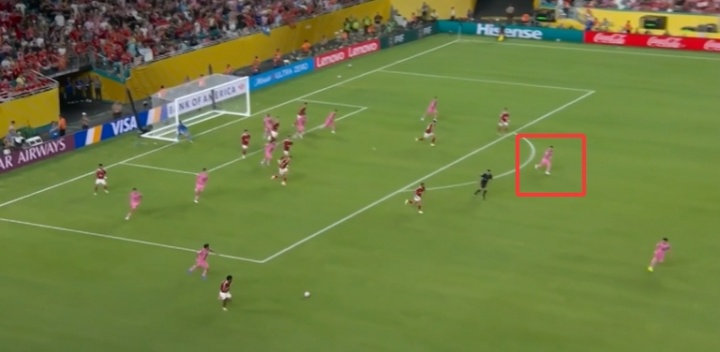 Club World Cup opening match, Miami International 0-0 Cairo Nationals. In the last attack of the game, Cairo Nationals counterattacked, and Messi chased back all the way to his own penalty area to defend. Messi will turn 38 on the 24th of this month.
