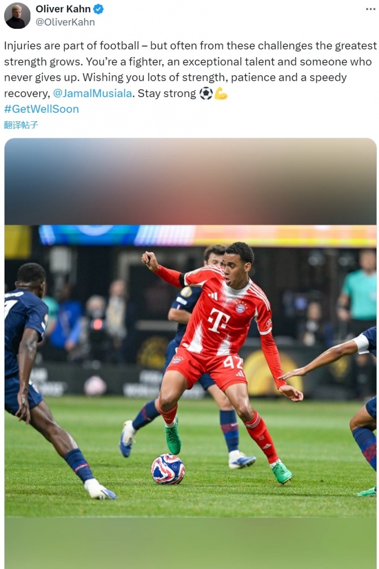 PiaoSports > Football > Kahn social media encourages Musiara: Challenges will nurture the most powerful force, I wish you a speedy recovery