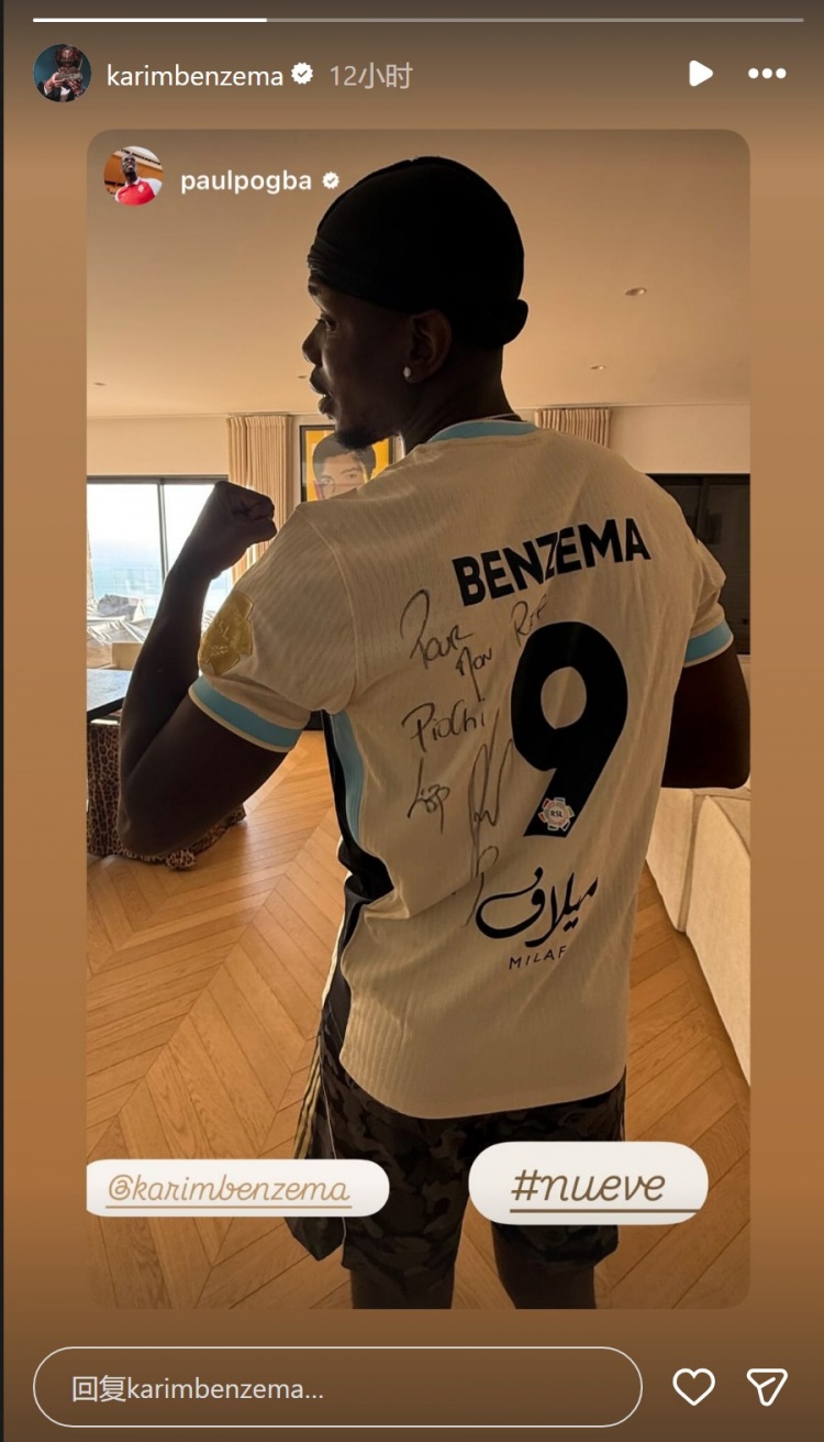 Pogba posted a photo on social media wearing a jersey signed by Benzema, and Benzema forwarded the news