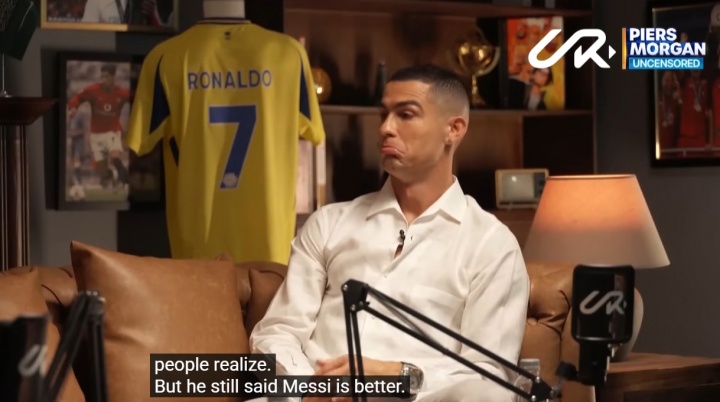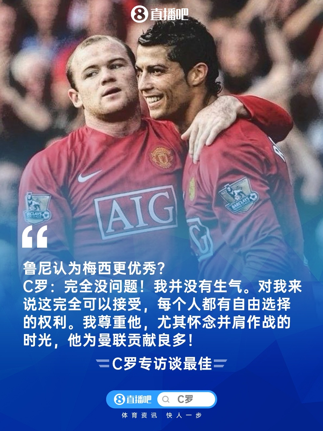 Today Morgan released the second part of the interview with Ronaldo, in which Morgan asked Rooney about Messi being better. Morgan: Wayne Rooney, your old teammate said last week that he doesn't hate you (despite what some people say), he actually likes you and calls you a genius. He said your relationship is closer than outsiders think, but he still thinks Messi is better. C Ronaldo: (pouting) No problem, no problem at all. Morgan: This answer is very special. Cristiano. C Ronaldo: But I am serious, I am not angry. To me this is perfectly acceptable and everyone has the right to freely choose. Morgan: Do you and Rooney have a friendship now? C Ronaldo: It’s not really a friendship. We had a good relationship when we were playing football together, but we weren't close friends who would come to my house for dinner and lunch every week or twice a week. We got along well on a football level, but I didn't have any friends who would come to the house for dinner. What I call "friends" requires a deeper bond. For example, Ferdinand is considered a friend and we still keep in touch. The word "friend" has a very, very deep meaning to me. I got along well with everyone in Victory in Riyadh, but real friends are another world away. I have nothing against him, really. If you have to ask what type of player you like the most...it really doesn't matter. I respect him and especially miss the time we played together. He contributed a lot to Manchester United and we won many honors together. I thanked him for what he said and for calling me a genius. No matter what choice he makes, there is no problem. If we meet, I will still shake hands and hug him. Now I have no time to dwell on this. Respecting other people's choices is the key. Morgan: After all, scoring is the ultimate response to doubts.